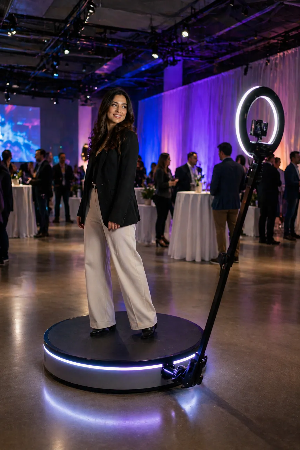 A 360 Brand Activation Experience brings a cinematic layer of excitement to corporate events across Dallas–Fort Worth, especially at product launches in Irving convention venues, retail activations in Plano lifestyle centers, and promotional showcases throughout Downtown Dallas. The cinematic 360 video booth captures dynamic movement from every angle, giving guests a polished, studio-style moment that naturally draws attention on busy event floors.